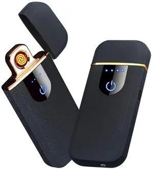 Electronic Lighter Smart USB Rechargeable, Mini Portable Design with Touch Dual-Sided Ignition - Windproof and flameless, Featuring Plasma Technology, Battery Indicator, and Lightweight Build(Black)