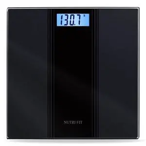Digital Body Weight Bathroom Scale, Large Blue LCD Backlight Display, High Precision Measurements, 6mm Tempered Glass, 400 Pounds, Black