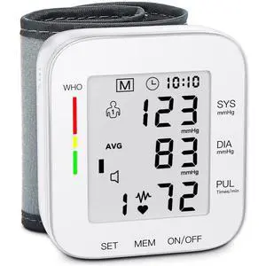 Wrist Blood Pressure Monitor Automatic Large LCD Display Adjustable Wrist Cuff Automatic Dual 99 Reading Memory Automatic Digital BP Machine for Home Use