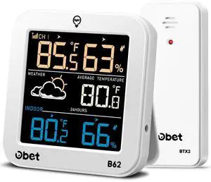 OBET Indoor Outdoor Thermometer Wireless Weather Station with 500FT Range Sensor and Adjustable Backlight Color Display Digital Temperature Humidity Monitor for House Patio