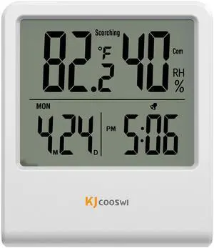 Indoor Thermometer, Room Thermometer and Hygrometer with Clock, Temperature and Humidity Meter with Clock, Double Comfort Indicator, Time, Date(White)