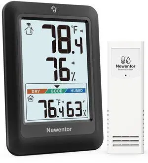 Indoor Outdoor Thermometer Wireless, Weather Stations Wireless Indoor Outdoor, Outdoor Thermometers for Patio House, Outside Inside Thermometers with Comfort Indicator, Black with 1 Sensor