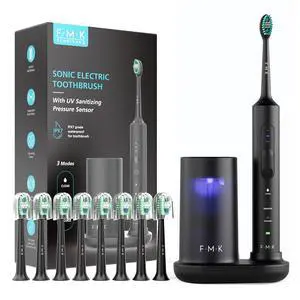 Electric Toothbrush for Adults with UV Cleaning, Drying Holder, Pressure Sensor, Smart Timer, Adult Electric Toothbrush Rechargeable Battery, 8 Replacement Brush Heads