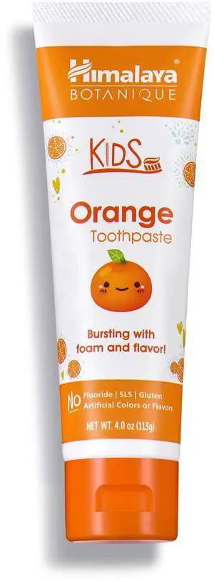 Botanique Kids Toothpaste, Herbal, Orange Flavor, Fights Plaque, Fluoride-Free, Gentle, No Artificial Flavors or Colors, SLS Free, Gluten Free, Cruelty Free, Vegan, Foaming, 4 Oz, 1 Pack- Brand: Himalaya