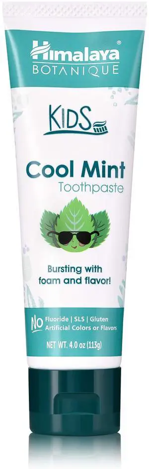 Botanique Kids Toothpaste, Cool Mint, Fluoride-Free, Gentle, No Artificial Colors, SLS Free, Gluten Free, Cruelty Free, Vegan, Foaming, 4 Oz, 1 Pack- Brand: Himalaya