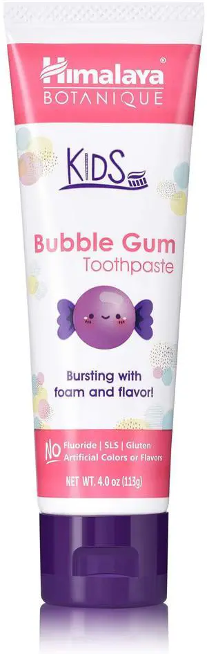 Botanique Kids Toothpaste with Xylitol, Bubble Gum Flavor - Gentle Fluoride Free Toothpaste - Vegan, Gluten Free, SLS Free, No Artificial Flavors or Colors, 4 oz- Brand: Himalaya
