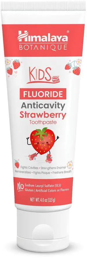 Botanique Kids Fluoride Anticavity Toothpaste, Strawberry Flavor, Fluoride Toothpaste, Helps Prevent Cavities, Vegan, SLS Free, No Artificial Colors or Flavors, Gluten Free, 4 oz (113 g)- Brand: Himalaya