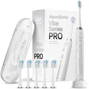 Vibe Series PRO Ultra-Whitening Electric Toothbrush 5 Modes & Smart Timers Premium Travel Case & 6 Proflex Brush Heads ADA Accepted Toothbrush (Optic White)
