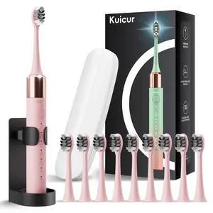 Sonic Electric Toothbrush for Adults & Kids, Rechargeable Electric Toothbrush with 10 Brush Heads & Travel Case, Teeth Whitening, Power Tooth Brush with Holder, Charge for 120 Days - Pink