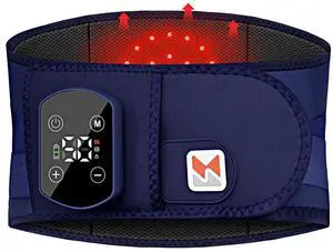 Cordless Heating Pad for Back Pain Relief,40" Rechargeable Lumbar Massager with Heat, Adjustable Vibration & Heating Belt for Waist, Abdomen, Muscle Relaxation - Portable and Comfortable (Dark Blue)