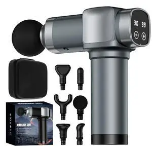 KUPAKY Massage Gun, Deep Tissue Massage Gun for Pain Relief, Handheld Electric Muscle Back Massager, Super Quiet Percussion Electric Massager with 30 Speed Levels 6 Massage Heads, Carry Case (Grey)