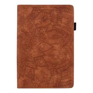 Folio Case for Kindle Paperwhite 10th/7th/6th/5th Gen (Prior to 2018), Techcircle Mandala Embossed PU Leather Slim Cover Lightweight Flexible TPU Elastic Band Protective Case with Card Slots, Brown