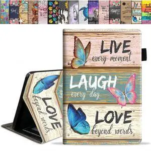 ERWYTYIOI Case for Kindle Fire HD 10 Tablet 10.1" (9th/7th Generation, 2019/2017 Release) - Slim PU Leather Stand Flip Cover with Card Slot & Pencil Holder, Inspirational Quote Live Laugh Love
