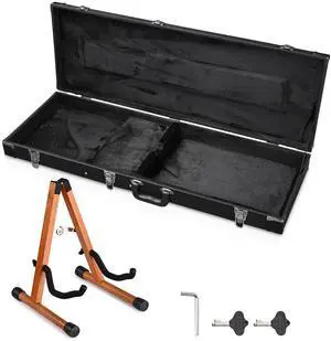 Yescom Electric Guitar Wood Case for Stratocaster Style w/ Folding Guitar Stand