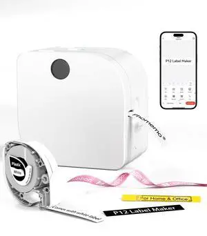 Label Maker Machine with Tape, P12 Bluetooth Small Label Maker with Multiple Templates Thermal Transfer Ribbon Printer Machine for Home, School, Gift Wrapping, Office, White