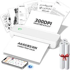 Portable Thermal Printers for Travel, Inkless Portable Printer Support 8.5'' x 11'' US Letter Size, Wireless Printer Compatible with iOS, Android & Laptop for Office,Home,
