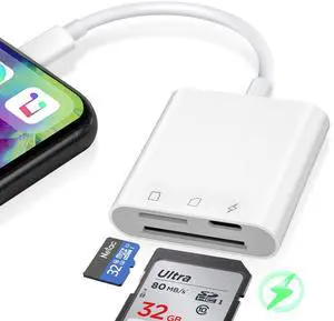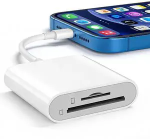3-in-1 SD Card Reader for iPhone 17 16 15 14 iPad, Memory Card Reader with USB Camera Adapter Plug and Play, SD/Micro SD Card Adapter for Mac Android PC, Trail Game Camera Viewer No App Required