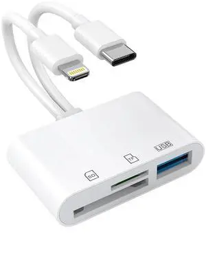 SD Card Reader for iPhone Plug and Play High Speed Transfer Trail Camera Viewer USB C and Lightning Dual Port CF/SD/MS/TF Card Adapter No App Driver Required