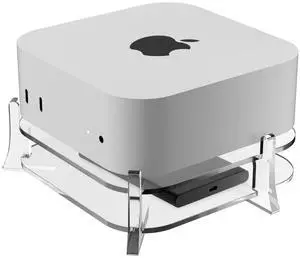 CaSZLUTION Mac mini M4 Stand with External SSD Storage Slot, Clear Acrylic Desktop Mount Holder for Mac mini M4/M4 Pro 2024, Enhanced Cooling, Easy Power Button Access & Desk Organization Design