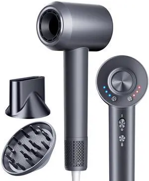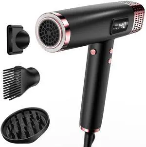 Hair Dryer, 110,000 RPM High-Speed Fast Drying Blow Dryer, 200 Million Ionic Lightweight Hairdryer with Diffuser, Magnetic Nozzle, 4 Temps & 2 Speeds, Low Noise for Women & Men, Black- Brand: Dekuri