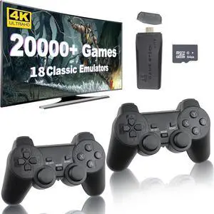 Retro Gaming Console, 20,000+ Retro Game Stick, 4K HD HDMI TV Game Stick, Built-in Classic Video Games 23 Emulators Plug & Play Game Console for TV with 2 Wireless Controllers