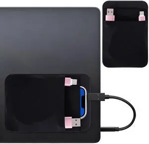 Portable Hard Drive Sleeve 2-Pocket Stick on Pouch with Reusable Adhesive SSD Hard Drives Carrying Case Computer Accessories Pouch Holder for Most Laptop External Solid State Drive Mouse USB Cable