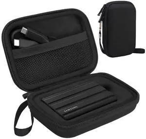 Portable External Hard Drive Carrying Case with Mesh Storage, Protection, Secure Strap, Black