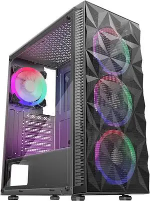 PC Case Pre-Install 4 RGB Fans, ATX Gaming Computer Case with Diamond-Shaped Mesh Front & Tempered Glass Side Panel, USB 3.0 Airflow Mid Tower case,621 Outer-Ring LED Fans