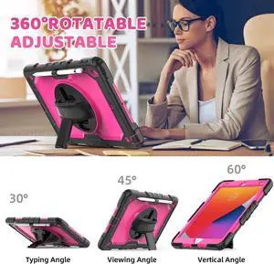 iPad 9th/ 8th/ 7th Generation Case 10.2" 2021/2020/2019, Full-Body Shockproof Heavy Duty Protective Case with Screen Protector, Rotating Stand/Handle/Shoulder Strap for iPad 10.2, Pink