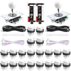 New Updated 2-Player LED DIY Arcade Kit 2X Zero Delay USB Encoder + 2X Joystick + 20x LED Arcade Buttons for PC, Windows, MAME, Raspberry Pi Arcade DIY (2-Player, White Kit)