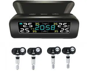 Tire Pressure Monitoring System Wireless Solar TPMS, Tire Pressure Monitor with 4 Sensors Real-time Display Temperature Pressure for Car RV SUV MPV Sedan (Internal)