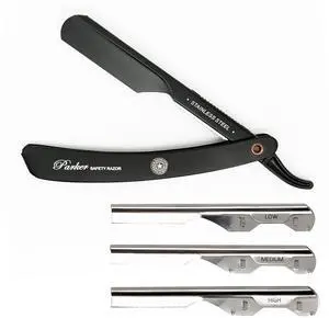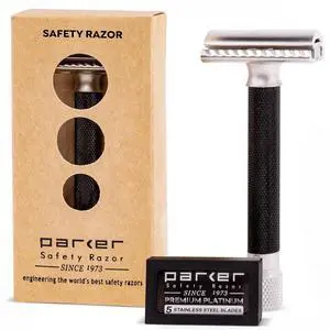 Parker 94R Hefty Double-Edge Safety Razor with Standard-Length Handle + 5 Premium Blades Chrome-Plated Brass, Three-Piece Design, Balanced Weight for Classic Wet Shaving