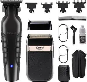 KEMEI Hair Trimmer for Men Professional & Waterproof Foil Shaver with Replaceable Foil Mesh, Zero Gapped Hair Clippers, Cordless Electric Razor for Men, Mens Grooming Shaving Kit, KM 2299, KM 2024