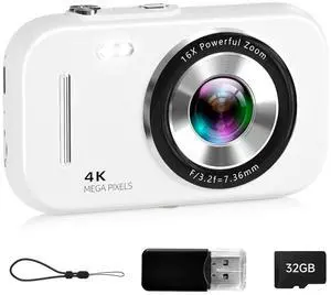 Digital Camera, 4K Vlogging Camera with 64MP, Point and Shoot Digital Cameras with 18X Zoom, Anti-Shake, Mode Dial, 32GB SD Card, Card Reader, Charger, Compact Small Cameras, Off WhiteLimited time offer, ends 03/22