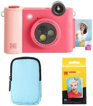 KODAK Smile+ 2-in-1 Digital Instant Print Camera & Wireless Bluetooth Photo Printer Starter Bundle + Carrying Case + Zink 20pk Sticky-Back Photo Paper - 10MP, Special-Effect Rotating Lens - Fuchsia