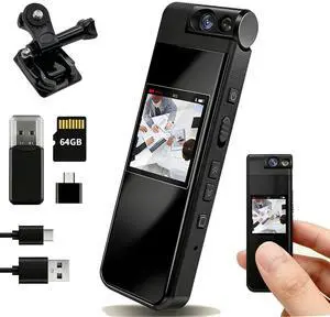 Mini Body Cameras with Audio and Video Recording - Small Body Camera 1080P with 64G Card - Wearable Personal Portable Cameras for Security Work Records Guard Traveling