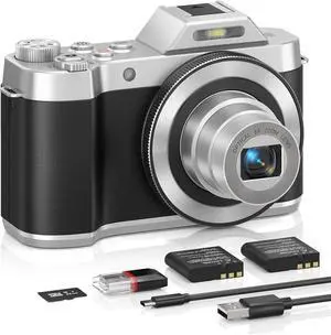 5K Digital Camera for Photography with WiFi 64MP Vlogging Camera with Flip Screen Compact Digital Cameras with Batteries, Selfie Light, Desktop Tripod