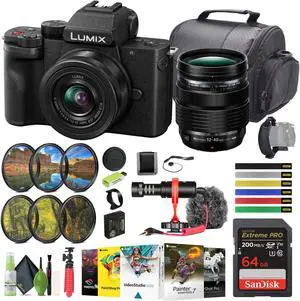 Lumix G100D 4K Mirrorless Camera 12-32mm + G Vario 45-150mm, Vlogging Bundle