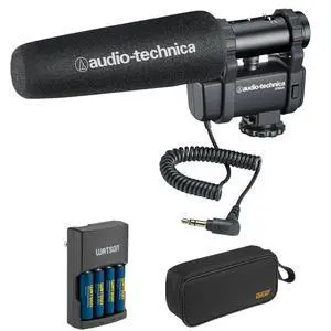 Audio-Technica AT8024 Stereo/Mono Camera-Mount Microphone Bundle with Watson Rapid Charger and Auray Wide Mouth Case