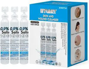 Sterile Saline Solution, 20-Pack Skin and Wound Cleanser, 0.9% Sodium Chloride Wound Wash & Nasal Rinse