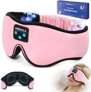 Bluetooth Sleep Headband with Eye Mask, Wireless Music Earbuds for Side Sleepers, Yoga, Insomnia Relief (Pink)