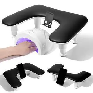 Arm Rest for Nails Tech: 3rd Generation Manicure Nail Arm Rest with Rotating Phone Stand, U-Shaped Height Adjustable Hand Rest Pillow for Acrylic Nails Black