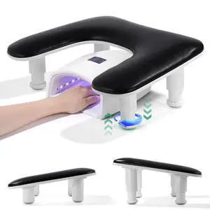 Big Arm Rest for Nails Tech: 2nd Generation U-Shaped Manicure Nail Rest Stand Height Adjustable Armrest Microfiber PU Leather Hand Rest Pillow for Acrylic Nails (Black)