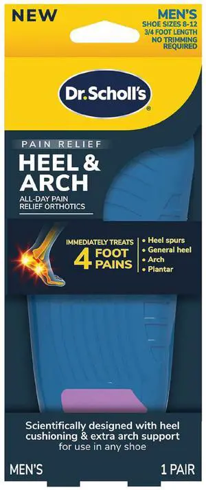 Heel & Arch All-Day Pain Relief Orthotics, Men's 8-12, 1 Pair, 3/4 Length