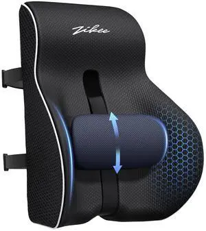 Ergonomic Lumbar Support Pillow Memory Foam for Lower Back Pain Relief, Adjustable Straps & Mesh Cover for Office, Gaming, Car Seat & Home Essentials (Black)