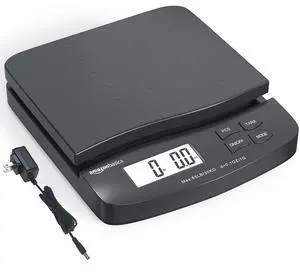 Amazon Basics Digital Postal Shipping Scale with Tare Function, AC Adapter, 65 lb Capacity, 0.1 oz Readability, LCD Display, Black
