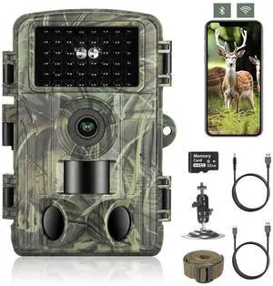 Trail Camera 4K 64MP WiFi Bluetooth Game Camera, Night Vision Wildlife Hunting Camera, 0.1s Trigger Motion Activated, IP67 Waterproof, 130° Wide Angle, 32GB SD Card for Deer & Farm Security