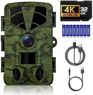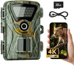 Trail Camera, 60MP Hunting Camera with WiFi, 32GB TF Card, Night Vision, Motion Activated, IP66 Waterproof, 120°Wide-Angle for Deer Scouting or Home Security, APP Control, H.264 MP4 Video