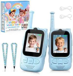 MECARE Video Walkie Talkies for Kids, 2 Pack Rechargeable, Long Range Voice & Video Communication, HD Camera, Fun Voice Effects, Ideal for Boys & Girls Ages 3-10, Indoor & Outdoor Play-Blue/Pink