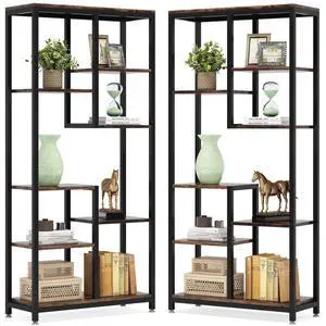 Tribesigns 6-Tier Tall Bookshelf Set of 2, Industrial 8-Shelf Open Bookcase Storage Display Book Shelves for Living Room, Home Office